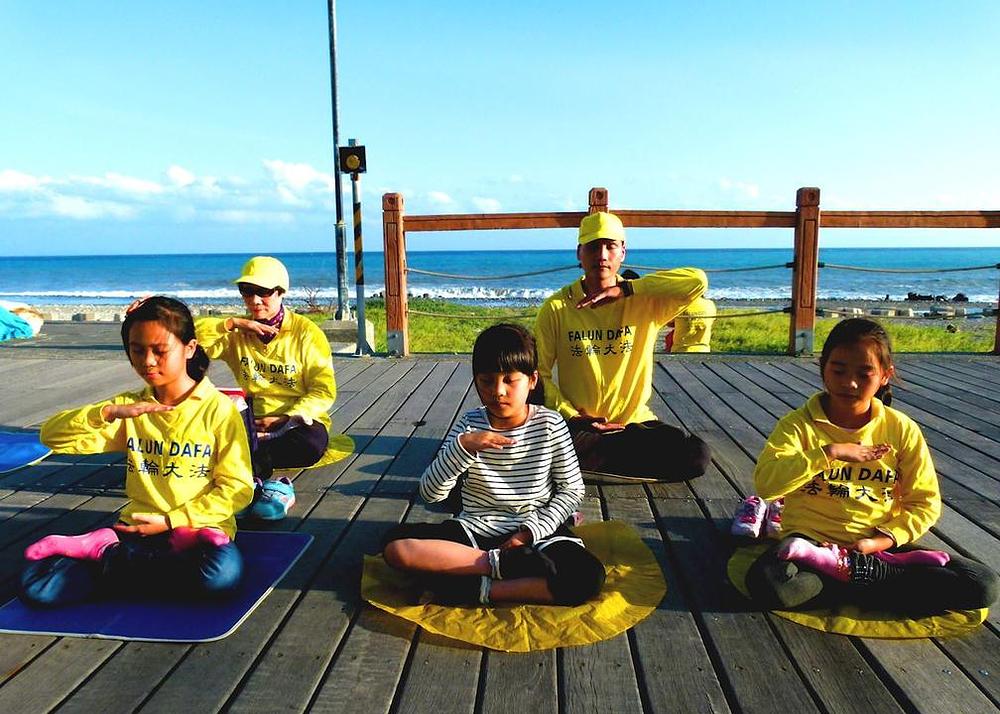 Prakticiranje Falun Gong vježbi u parku na morskoj obali u Taitungu