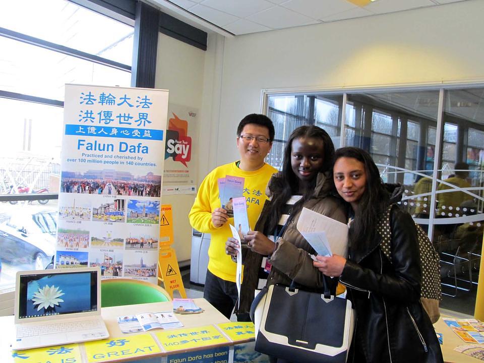 U kampusu koledža Matthew Boulton, u centru Birminghama, praktikanti Falun Dafa su postavili panoe na kojima su davali informacije o ovoj praksi. Impresionirane demonstracijom blagih vježbi, Rebecca Hayllar i Jessica Pilling sa obližnjeg stola su bile zainteresirane naučiti više ovoj praksi. Postavile su puno pitanja i kazale kako su čule da su Falun Dafa praktikanti već 18 godina progonjeni u Kini zbog njihovog vjerovanja.