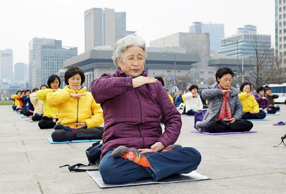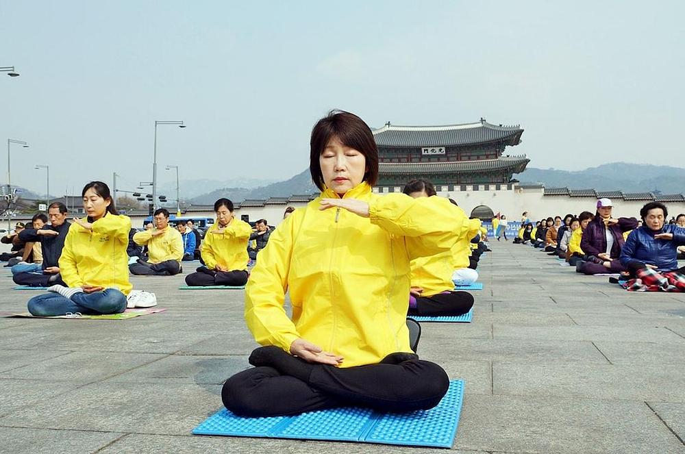 Na čuvenoj turističkoj destinaciji, Gwanghwamun Gate Plaza, koja se nalazi ispred palače Gyeongbokgung, praktikanti su izvodili vježbe uz muziku. Jedan od članova ove grupe je objašnjavao prolaznicima kako Falun Dafa pomaže i fizički i duhovno onima koji ga prakticiraju.