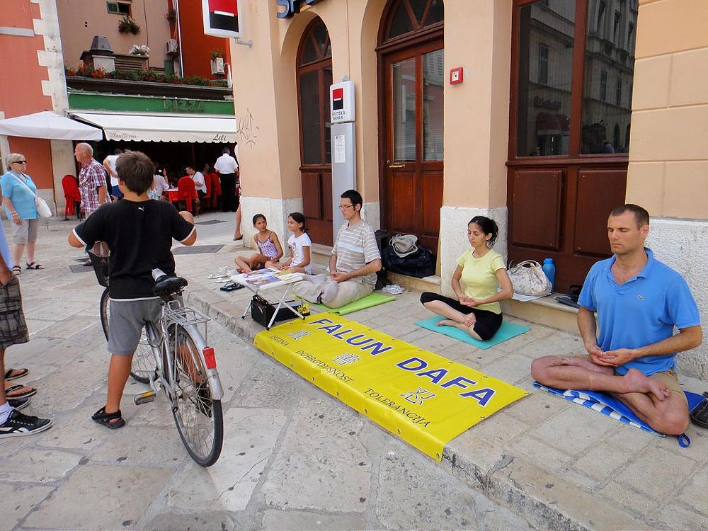 Poslijepodne istog dana, održan je info dan u Rovinju. Bilo je puno ljudi i turista koji su uzimali letke i lotosove cvjetove. I u Rovinju su djeca bila izrazito zainteresirana naučiti vježbe. Dvije djevojčice su meditirale zajedno s praktikantima u petoj vježbi. Djeca su dolazila izravno pitati praktikante da im pokažu vježbe. Jedan dječak je rekao: „Zanima me samo peta vježba. Pokažite mi petu vježbu.“ Jedan dječak je došao s grupom prijatelja i željno htio čuti sve o praksi i progonu. Tijekom objašnjavanja neki od prijatelja su ga pokušavali odvući, no on je ozbiljno rekao da želi čuti i pažljivo saslušao sve, a time su i njegovi prijatelji sve čuli. Rekao da je da ga zanima Falun Gong, uzeo je letak, nakon toga se zahvalio i otišli su dalje. Mnogi ljudi, osobito turisti, bi se zaustavljali, gledali praktikante kako rade vježbe i, želeći znati više o Falun Dafa, uzeli bi letke.