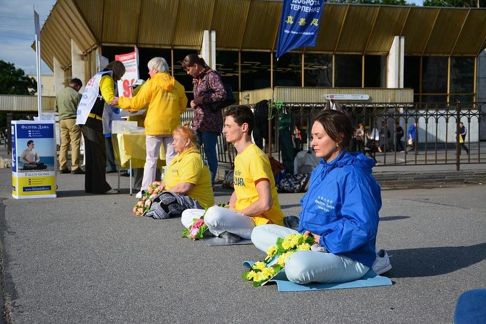 U St. Petersburgu su praktikanti 20. jula na više lokacija organizovali razne događaje kako bi time podigli svijest ljudi o progonu. Oni su organizovali i miroljubivi protest ispred kineske ambasade. U ambasadu je došla i kineska delegacija i vidjela proteste.