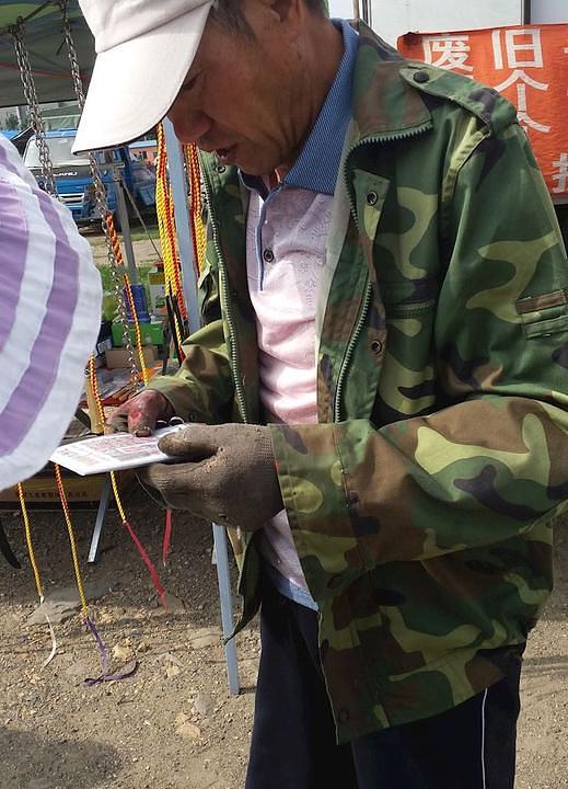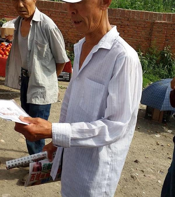 Praktikanti Falun Gonga distribuiraju informativne materijale na velikoj tržnici kako bi podigli svijest o progonu. Ljudi rado uzimaju materijale i odmah ih počinju čitati.