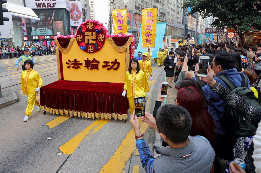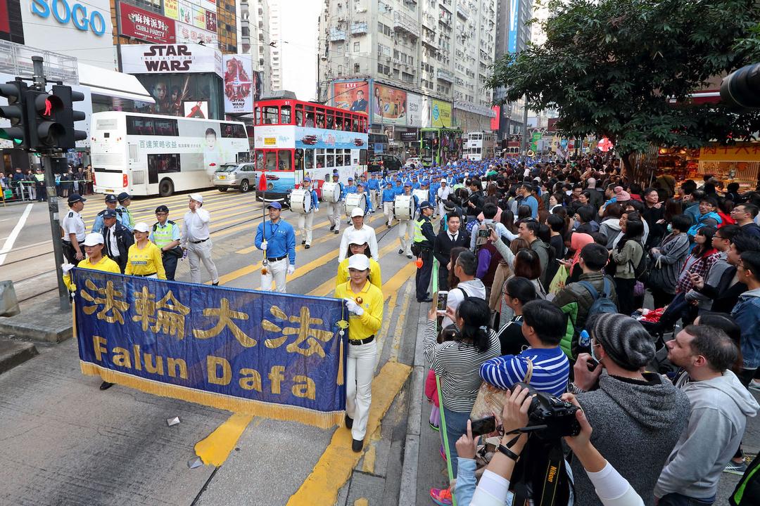 Praktikanti Falun Gonga su na trgu Edinburgh u Hong Kongu održali skup i paradu povodom Svjetskoga dana ljudskih prava 10. decembra 2017. u znak protivljenju progonu Falun Gonga u Kini koji i dalje traje. Brojni članovi zakonodavnog vijeća i renomirani advokati za ljudska prava su govorili na skupu, pozivajući na okončanje zločina koji se dešavaju u matici Kini.