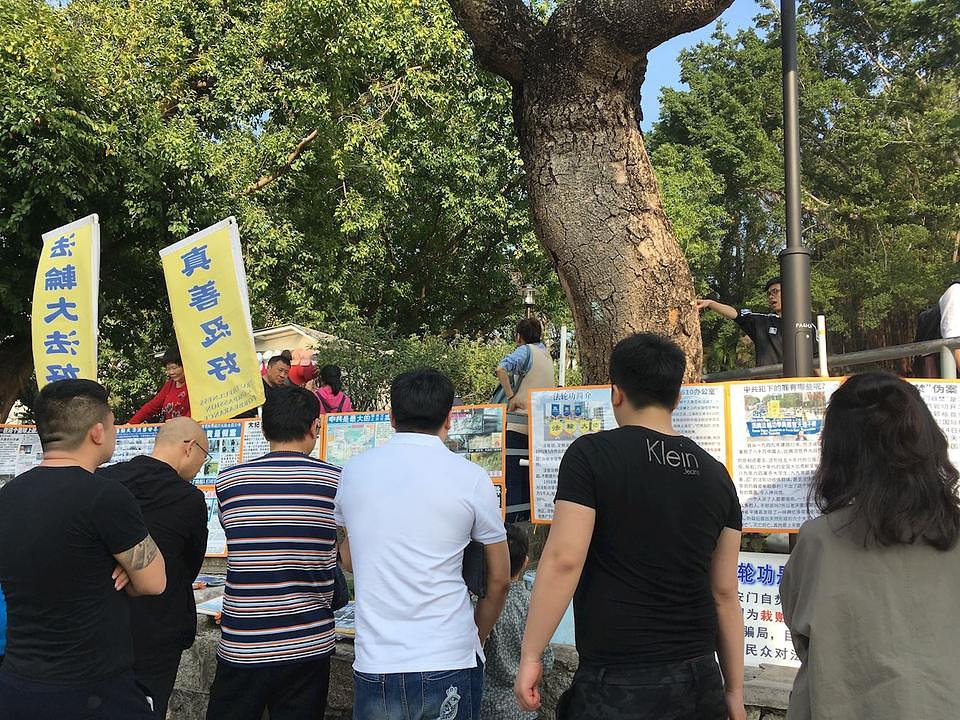 Gđa Hu, druga praktikantica koja je došla da pomaže u podizanju svijesti (o progonu), je kazala kako joj je drago što vidi takve reakcije turista. "Zbog toga što Komunistička partija progoni Istinitost-Dobrodušnost-Toleranciju, svako ko prekine svoje veze sa Partijom, ide ka boljoj budućnosti", rekla je.