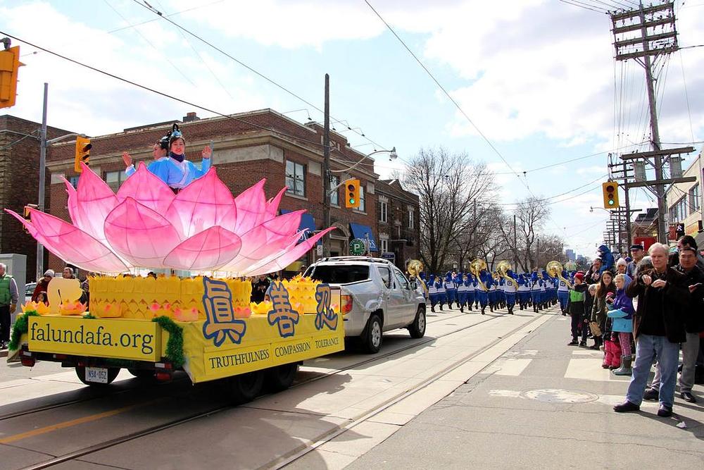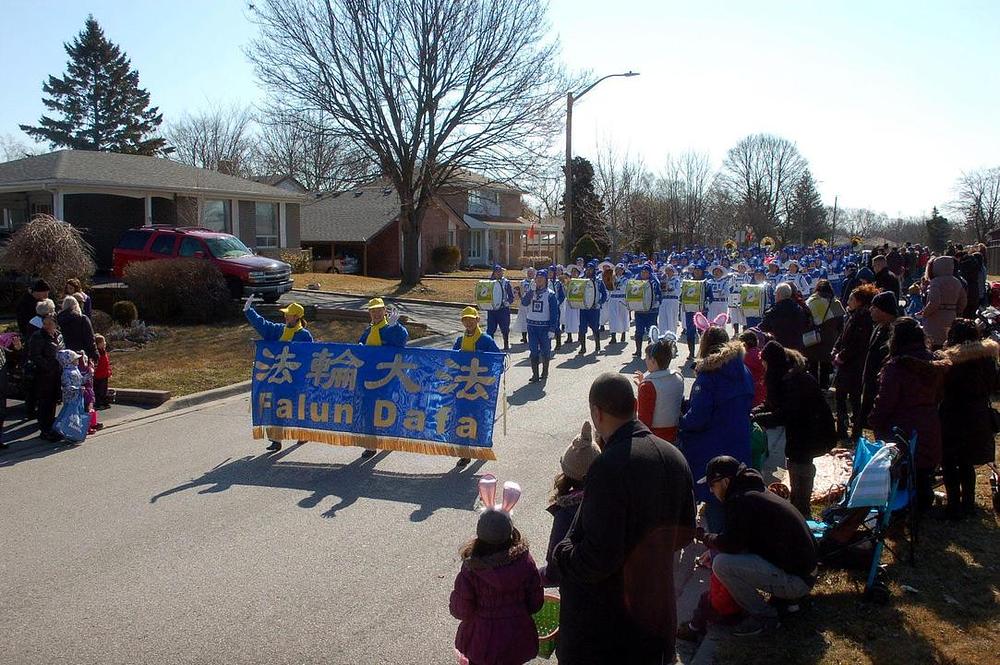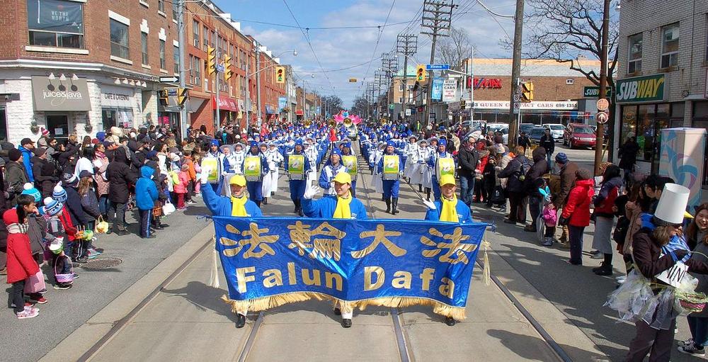 Praktikanti Falun Gonga su se 1. aprila 2018. pridružili Uskršnjoj paradi u organizaciji Beaches Lions Cluba iz Toronta, nakon što su nastupili na Uskršnjoj paradi u Pickeringu u predgrađu Toronta 31. marta. Na paradi je učestvovao Tian Guo Marching Band i dobošarska grupa, a bio je uređen i pokretni splav.