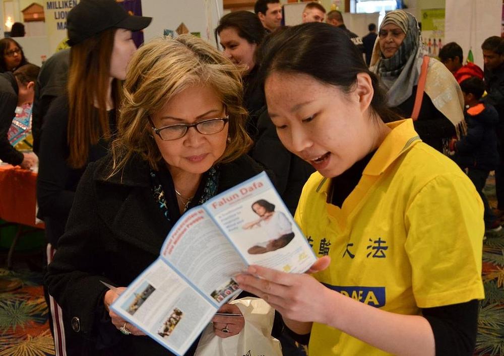 Mnogi su se posjetioci zaustavili pokraj Falun Gong štanda, jer su bili zainteresovani da nauče više o ovoj tradicionalnoj duhovnoj praksi iz Kine. Prilično je veliki broj učesnika naučio Falun Gong vježbe od praktikanata. Falun Gong, praksa kultivacije uma i tijela, se u Kini podučava od 1992. godine, a sada je praktikuju ljudi iz više od 100 zemalja i regiona širom svijeta. Kineski režim je 1999. godine pokrenuo kampanju progona praktikanata Falun Gonga, a taj progon danas još uvijek traje u Kini.