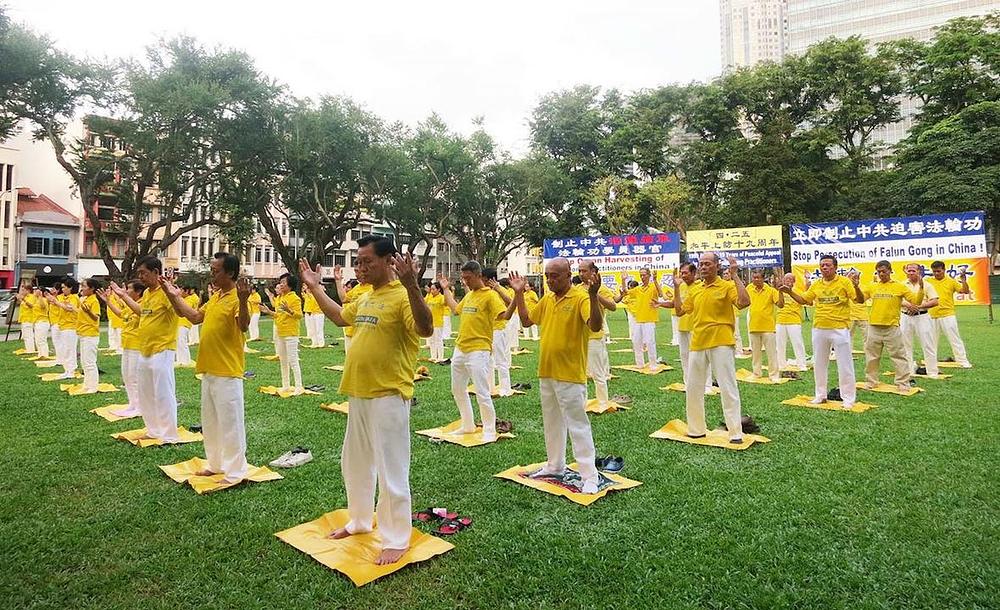Praktikanti Falun Gonga u Singapuru su, 17. aprila 2018. godine, održali komemoraciju u Hong Lim Parku obilježavajući tako 19. godišnjicu mirnog protesta održanog 25. aprila u Pekingu. Oni su takođe podržali 300 miliona Kineza koji su povukli svoje članstvo u Komunističkoj partiji Kine (KPK) i njenim pridruženim organizacijama.