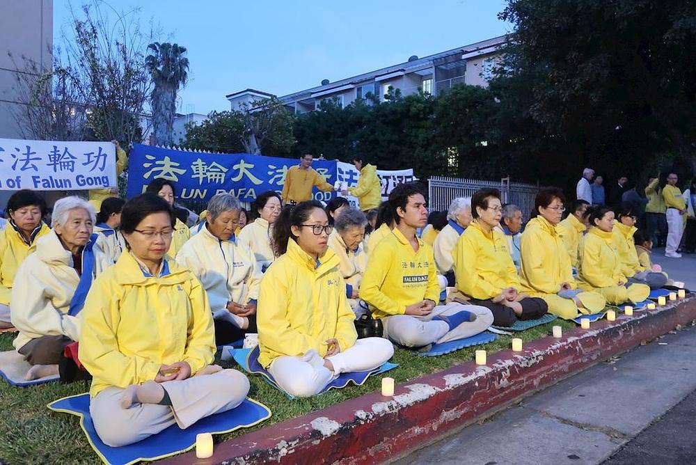 Bdijenje uz svijeće u Los Angelesu održano je navečer 23. aprila ispred Kineskog konzulata. Veliki transparenti su pozivali na ukidanje zvjerstava u Kini i dovođenje Jianga pred lice pravde.