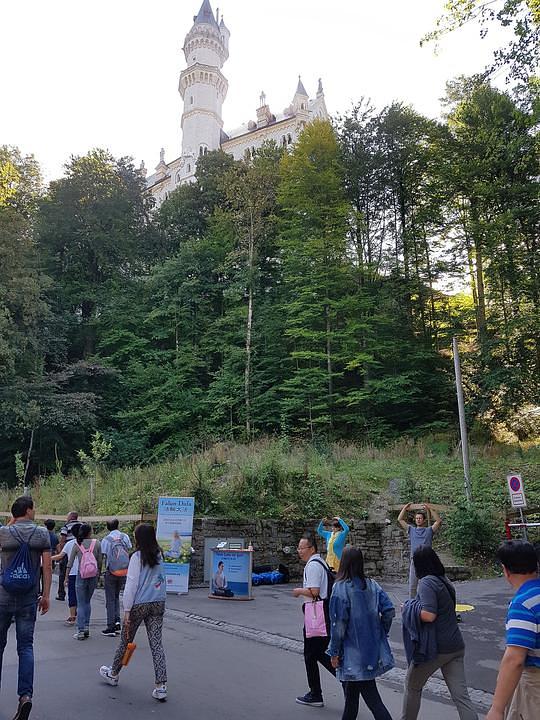 Falun Gong praktikanti iz Bavarske svakog mjeseca održavaju informativni dan ispred dvorca Neuschwanstein, poznatoj turističkoj destinaciji u Njemačkoj. Oni podižu svijest o progonu turista iz cijelog svijeta, posebno onih iz matice Kine. Posljednji događaji su održani 8. jula i 15. avgusta 2018. godine.