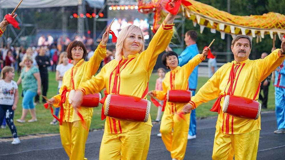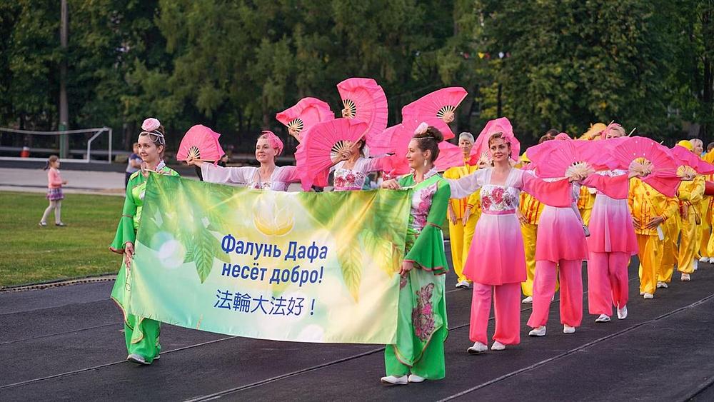 Falun Dafa praktikanti su učestvovali u aktivnostima na uličnom sajmu održanom 1. i 2. septembra 2018. godine u gradu Nižnji Novgorod, koji se nalazi 250 kilometara istočno od Moskve. Nastup je uključivao paradu, demonstraciju izvođenja vježbi i nastup dobošarske grupe, kao i plesače koji su izvodili znajev ples.