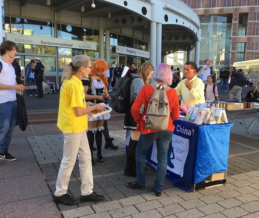 Praktikanti Falun Gonga su 10. i 14. oktobra 2018. održali informativne aktivnosti ispred zgrade sajma knjiga u Frankfurtu. Posjetioci sajma knjiga su imali priliku upoznati Falun Gong i informisati se o progonu prakse koji vrši komunistički režim u Kini. Mnogi su posjetioci potpisali peticiju pozivajući na okončanje progona.