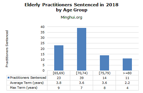 Devedeset pet praktikanata su starosti 65 ili više godina. Deset praktikanata u sedamdesetim godina života je osuđeno je na 7 godina, a četiri u osmom desetljeću života su dobili kazne od 4 godine.