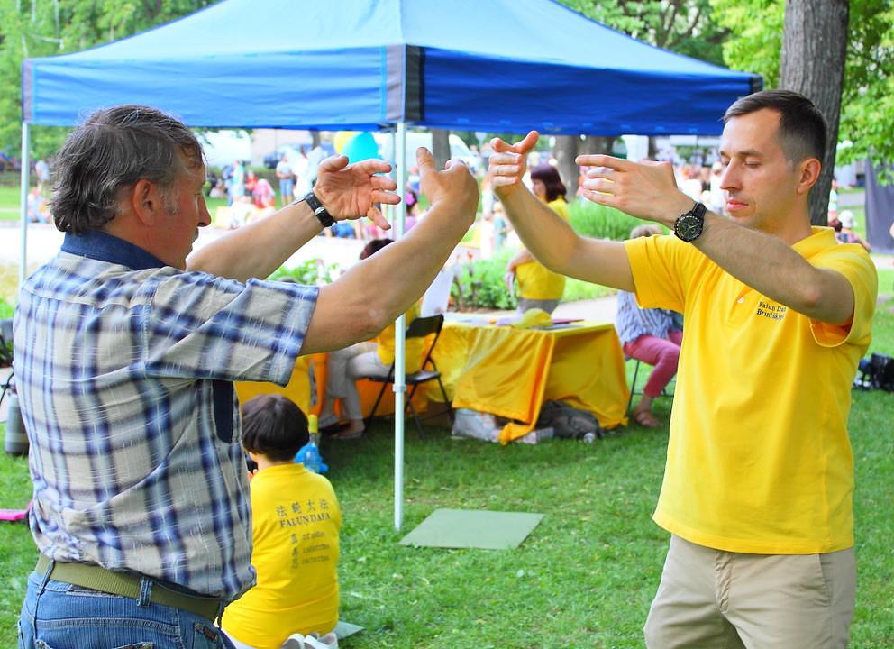 Nakon parade, praktikanti su, u Parku Dubrovin, održali besplatnu radionicu za učenje vježbi kako bi ljudi mogli naučiti pet Falun Gong vježbi.