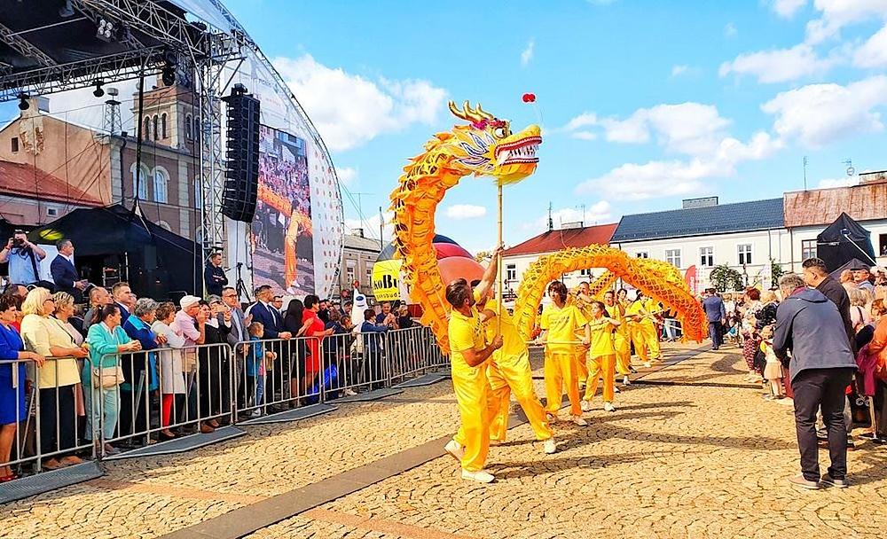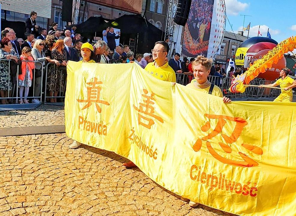 Godišnji Festival cvijeća, voća i povrća, 42. po redu, je održan 14. septembra 2019. u Skierniewice u Poljskoj, a grupa Falun Gong praktikanata koja je izvodila zmajev ples je učestvovala u paradi održanoj u sklopu festivala. Ovo je peti put da se praktikanti pridružuju ovoj godišnjoj manifestaciji, a njihovi jarko obojeni plavo-žuti transparenti i živahna izvedba plesa zlatnoga zmaja su dobili tople aplauze publike.