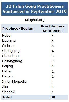 Prema informacijama koje je prikupio Minghui.org, potvrđeno je da je 30 praktikanata Falun Gonga osuđeno na zatvorske kazne u septembru 2019. godine zbog svoje vjere.