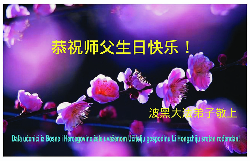 Dafa praktikanti iz Bosne i Hercegovine šalju čestitke Učitelju Liju povodom 13. 5. - Učiteljevog rođendana, Svjetskog Falun Dafa dana i 21. obljetnice od predstavljanja Falun Dafa u javnosti.