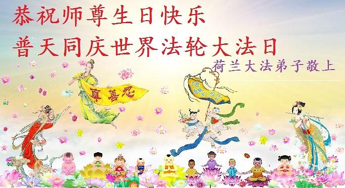 Praktikanti iz Nizozemske slave 21. godišnjicu predstavljanja Falun Dafa u javnosti i s poštovanjem žele milostivom velikom Učitelju sretan rođendan!