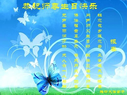 Praktikanti iz provincija Heilongjiang, Liaoning, Hebei, Shandong, Shaanxi, Gansu, Sichuan, Hubei, Jilin, Chongqing, Guangdong, Henan, Shanghai i Tianjin slave Svjetski Falun Dafa dan i šalju rođendanske čestite poštovanom Učitelju Li Hongzhiju.
