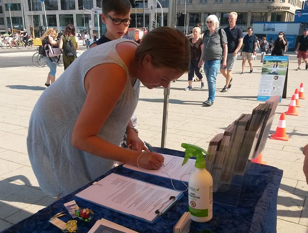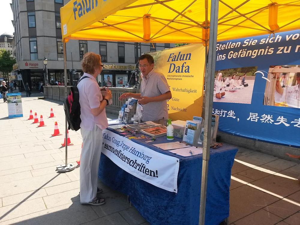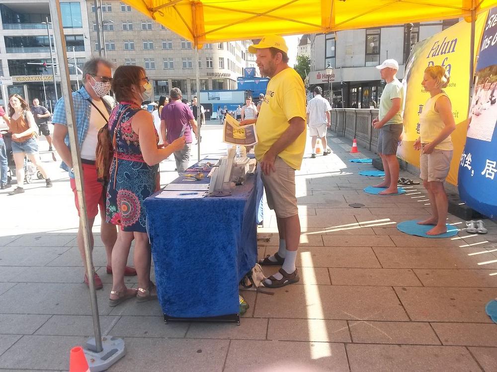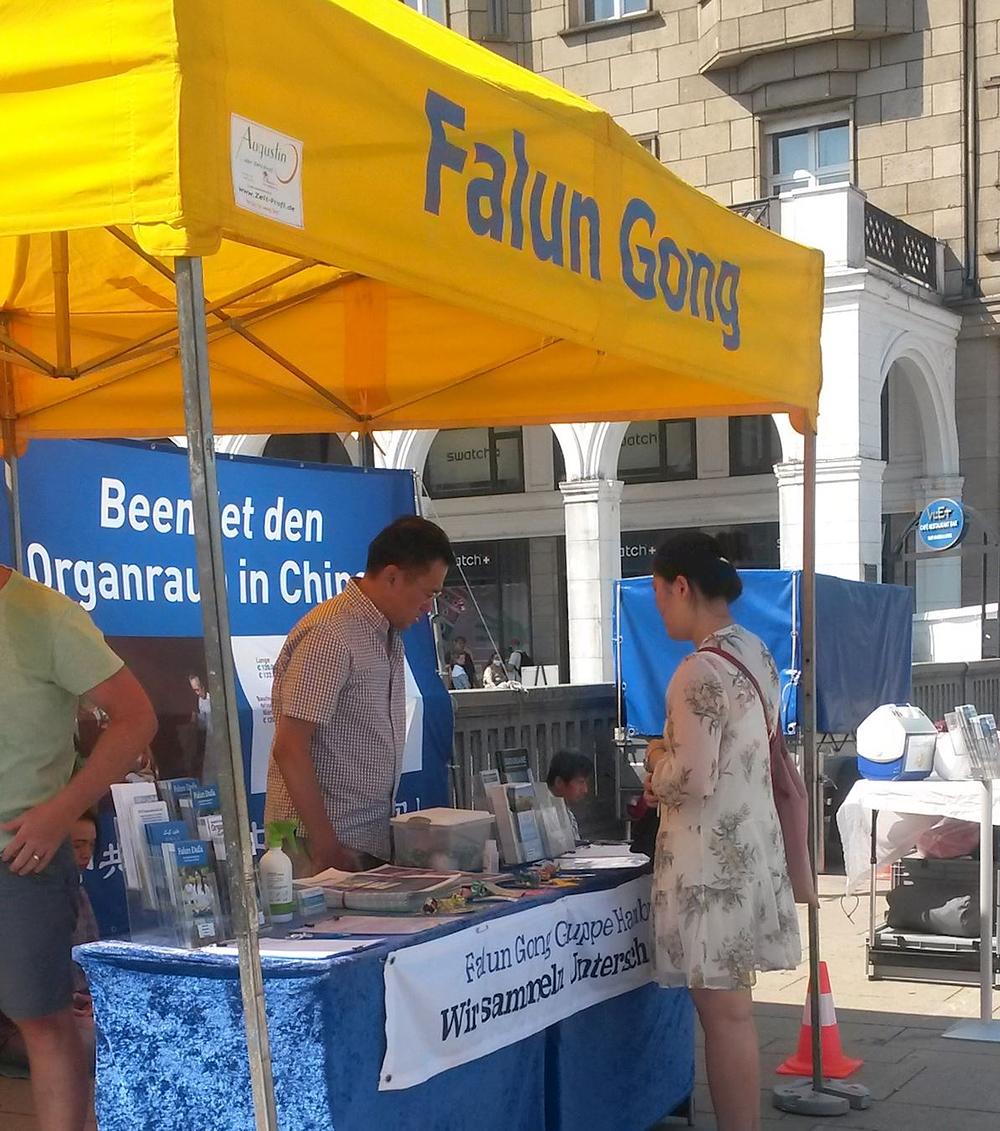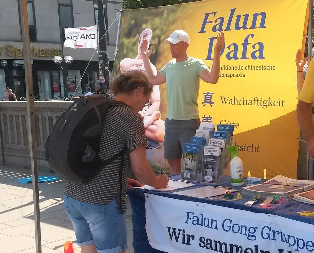 Žena koja je potpisala peticiju je kazala da već od ranije zna za progon Falun Gonga u Kini. Ispostavilo se da je njena maćeha bila Kineskinja, pa je ova žena često odlazila u Kinu. Posljednji put kad je otišla tamo je ostala šest mjeseci. „Čula sam da se tamo za dvije nedelje može pronaći donor jetre. To je nevjerovatno. U Njemačkoj biste za tako nešto morali čekati 10 godina “, rekla je. Ona je praktikantima poželjela sve naj bolje.