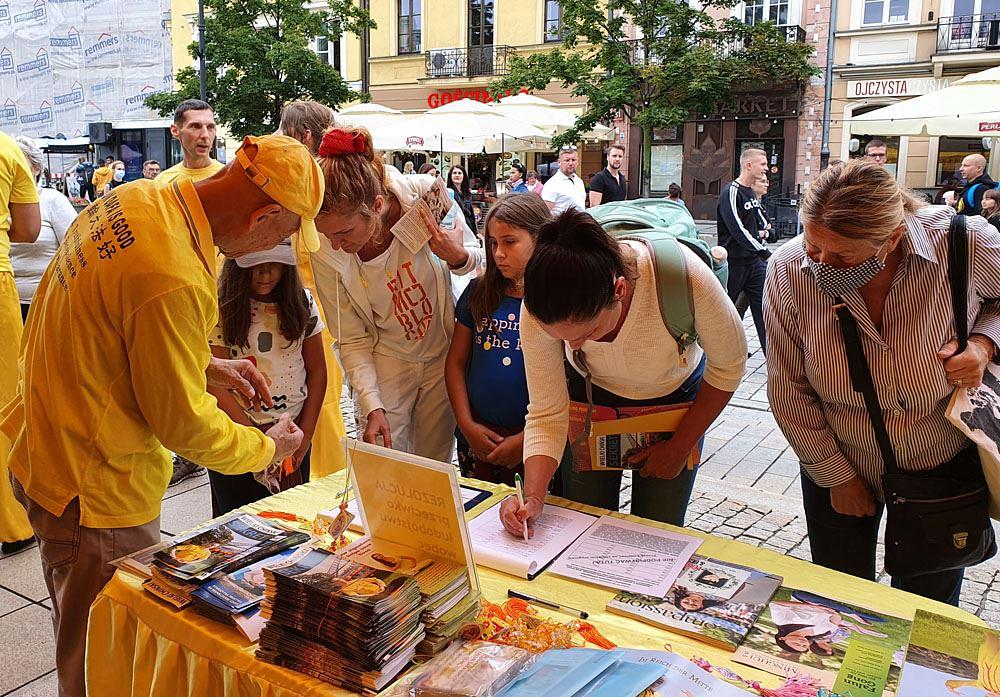Zbog aktuelne pandemije koronavirusa, na ovom je događaju učestvovalo mnogo manje grupa i učesnika u odnosu na prethodne godine. Bez obzira na to, mnogi su se ljudi zaustavili na štandu želeći dobiti najnovije informacije. Neki su potpisali peticiju u znak podrške podnošenju krivičnih prijava protiv Jiang Zemina, bivšeg lidera Komunističke partije Kine (KPK), zbog suzbijanje Falun Gonga, dok su drugi potpisali peticiju tražeći od poljskih zvaničnika da rade na zaustavljanju progona Falun Gonga u Kini.