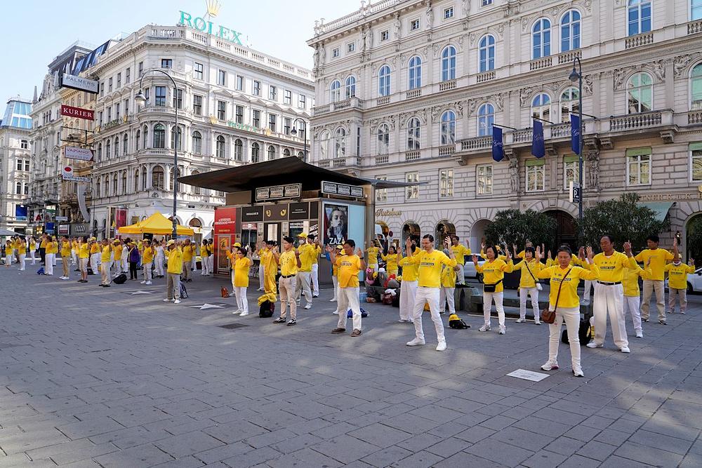 Falun Dafa praktikanti su, 12. septembra 2020. godine, održali skup na trgu ispred državne opere u Beču da bi ljude upoznali sa ovom duhovnom praksom i njenim progonom od strane Komunističke partije Kine (KPK). Nakon skupa uslijedila je parada koju su predvodili Tian Guo Marching Band, Zlatni zmaj i dobošarska grupa. Parada je bila po prvi put održana u Beču nakon što se pandemija koronavirusa proširila Europom.