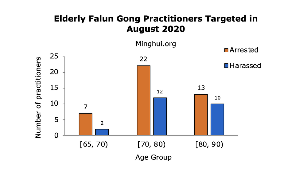 66 praktikanata koji su se našli na meti progona je bilo starosti između 65 i 86 godina, odnosno 42 uhapšena i 24 uznemiravana. Dvadeset i tri praktikanata su imala 80 i više godina.