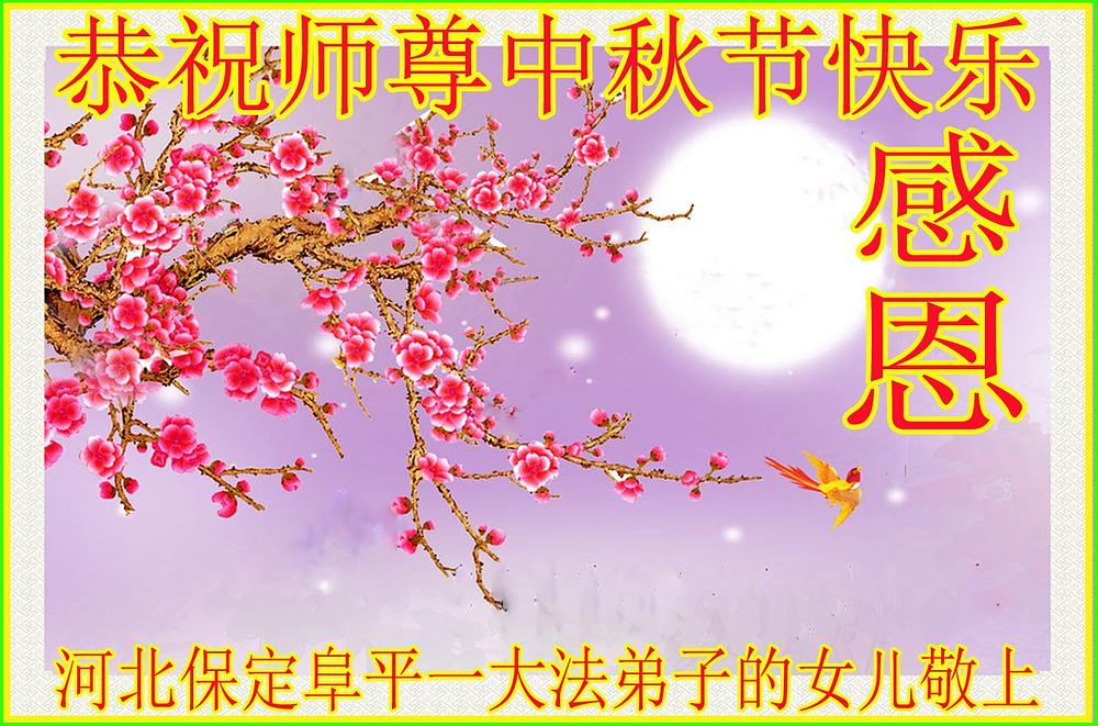 Članovi porodice Dafa praktikanta iz grada Tangshana u provinciji Hebei su zaželjeli Učitelju Liju sretan Jesenji festival. Oni u svojoj poruci kažu: „Pozdravljamo Učitelja, naporno ste radili. Mi smo velika porodica i zato što članovi naše porodice prakticiraju Dafa, vi ste nas zaštitili i dobili smo blagoslov. Vodimo siguran, zdrav i sretan život u tako uzburkanim vremenima. Znamo da je to zato što je Učitelj podnio sve vrste pritisaka da bi spasi čovječanstvo usred korupcije propadanja moralnih vrijednosti."