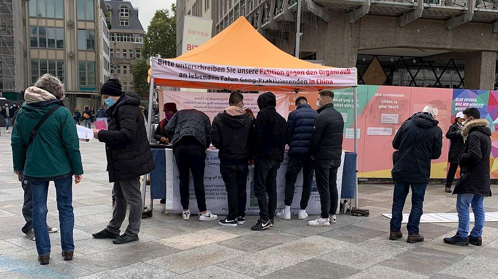 Falun Dafa praktikanti u Kelnu su nastavili sa održavanjem svoga sedmičnog informativnog dana i aktivnostima prikupljanja potpisa, na lokaciji ispred istorijske Katedrale u Kelnu i tokom vikenda od 17. do 18. oktobra 2020. godine. Oni su, prije pet mjeseci, nastavili sa svojim aktivnostima nakon što je popustila blokada kretanja u ovom gradu.