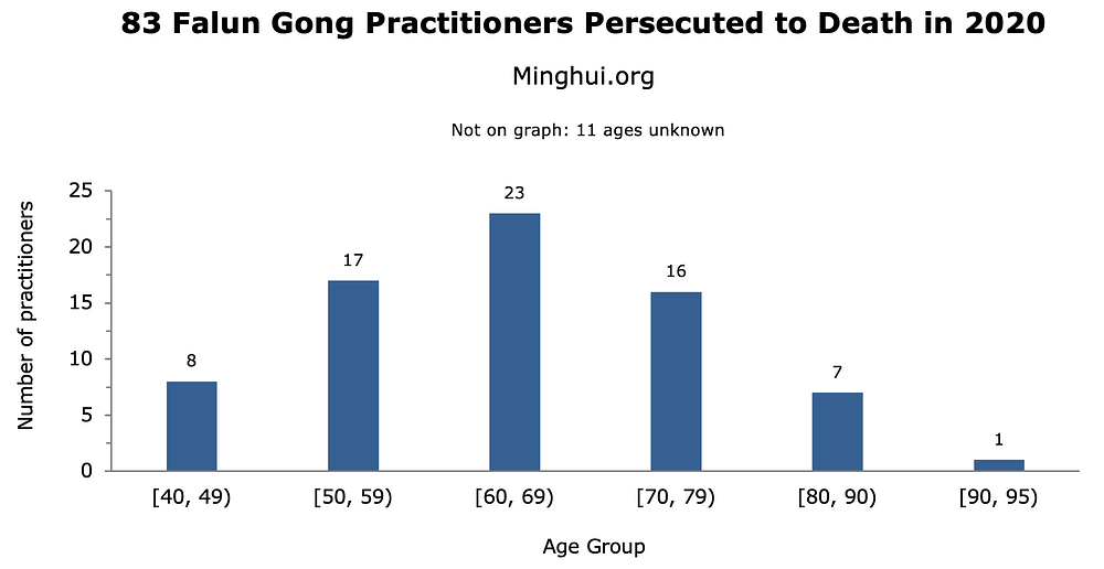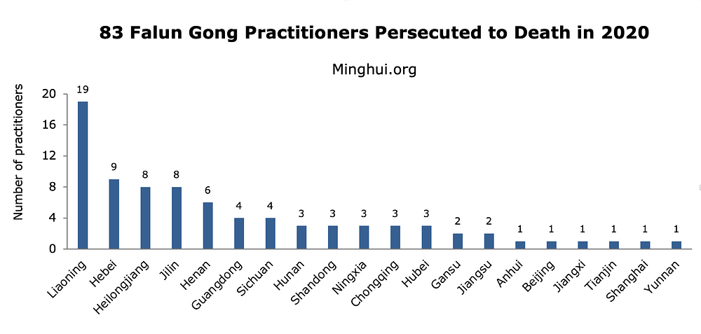 Prema informacijama koje je prikupio Minghui.org, najmanje su 83 praktikanta Falun Gonga umrla u 2020. godini, od posljedica progona koji nad njima sprovodi kineski komunistički režim zbog toga što praktikanti podržavaju svoju vjeru.