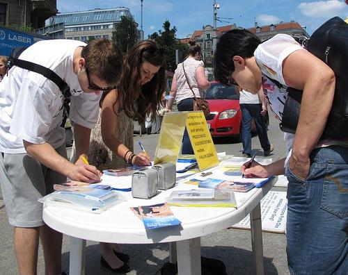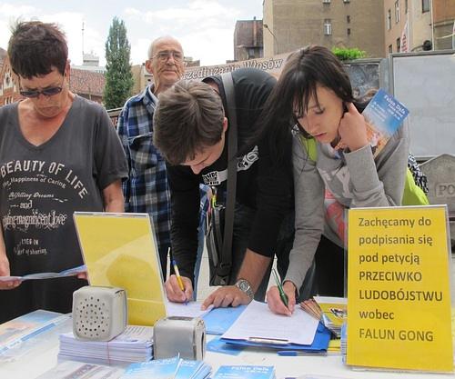 Građani Poznana potpisuju peticiju kojom se zahtjeva prestanak progona Falun Gonga u Kini.