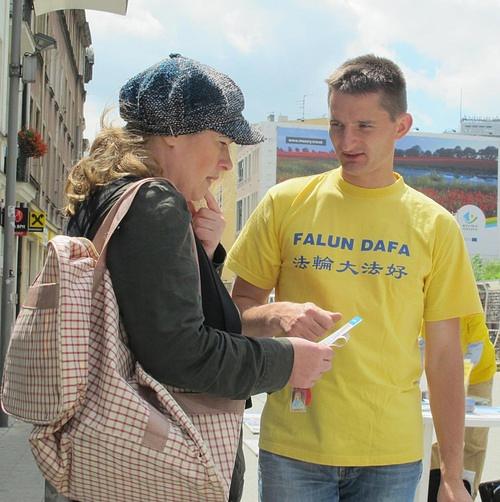 Falun Gong praktikanti objašnjavaju činjenice o Falun Gongu građanima Poznana.