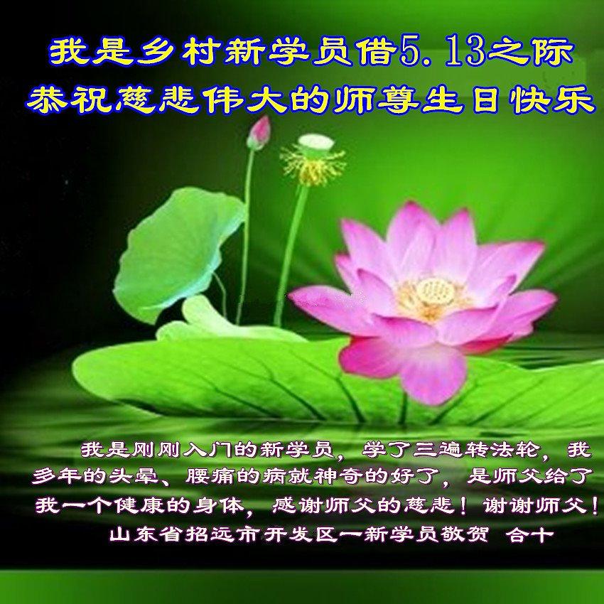 Rođendan Učitelja Li Hongzhija, osnivača Falun Dafa, 13. maj, je također i Svjetski Dan Falun Dafa. Novi praktikanti iz Kine koji su lično iskusili čudesan oporavak zdravlja i druge blagodati od prakticiranja ove prakse, su poslali pozdravne poruke i čestitke na web stranicu Minghui kako bi izrazili svoje duboko poštovanje i zahvalnost Učitelju Liju.