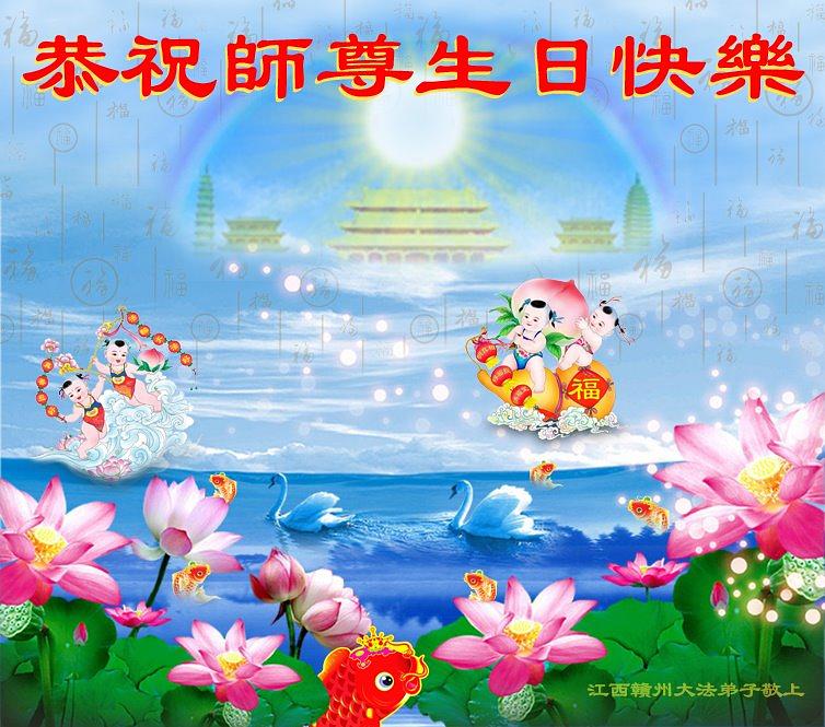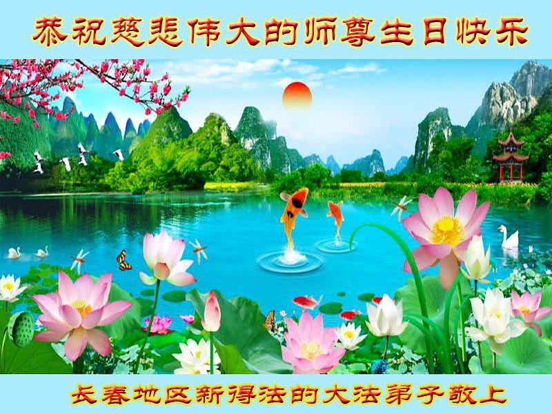Povodom Svjetskog Dana Falun Dafa, svi slavimo ovaj poseban dan. Hvala Učitelju na vašem Dobrodušnom spasenju! Sretan vam rođendan!"