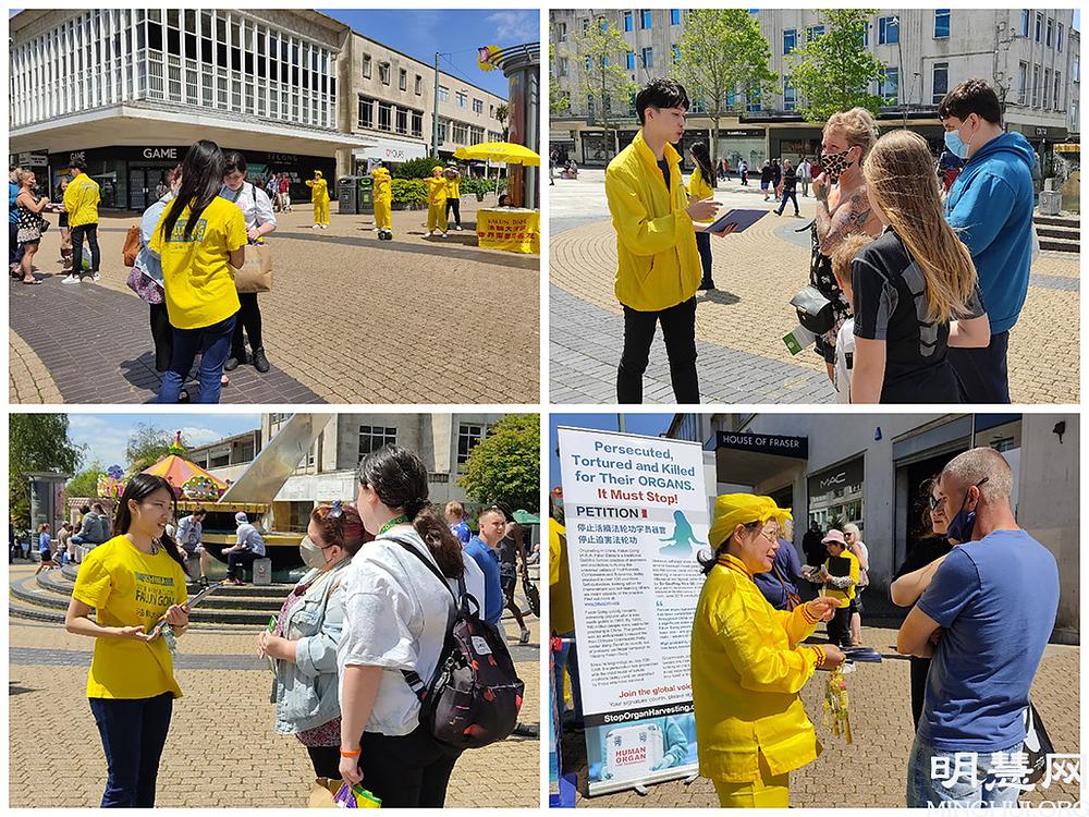 Plymouth je grad na putu do Cornwalla i udaljen je nešto više od sat vremena vožnje od mjesta održavanja samita G7. Svi lokalni smještajni kapaciteti su bili popunjeni za vrijeme održavanja ovoga događaja. Praktikanti su svakodnevno odlazili u centar grada demonstrirati izvođenje vježbi, dijeliti letke, razgovarati s ljudima o progonu i prikupljati potpise na peticiji za okončanje ovih zločina. Nekoliko ljudi je odmah potpisalo peticiju čim su praktikanti postavili informativni štand.