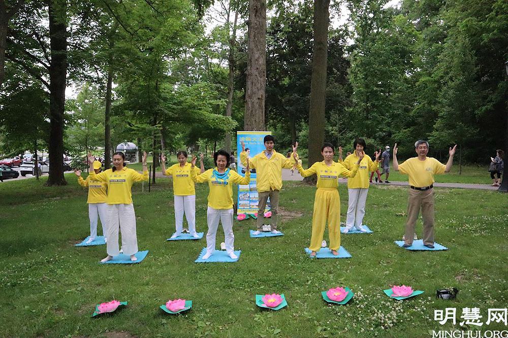 Smanjivanjem epidemije koronavirusa u Kanadi, veliki broj turista se, 12. juna 2021. godine, vratio na živopisne Nijagara vodopade. Falun Dafa praktikanti iz Toronta su također nastavili sa radom na mjestu za grupno prakticiranje na ovoj popularnoj turističkoj atrakciji.
