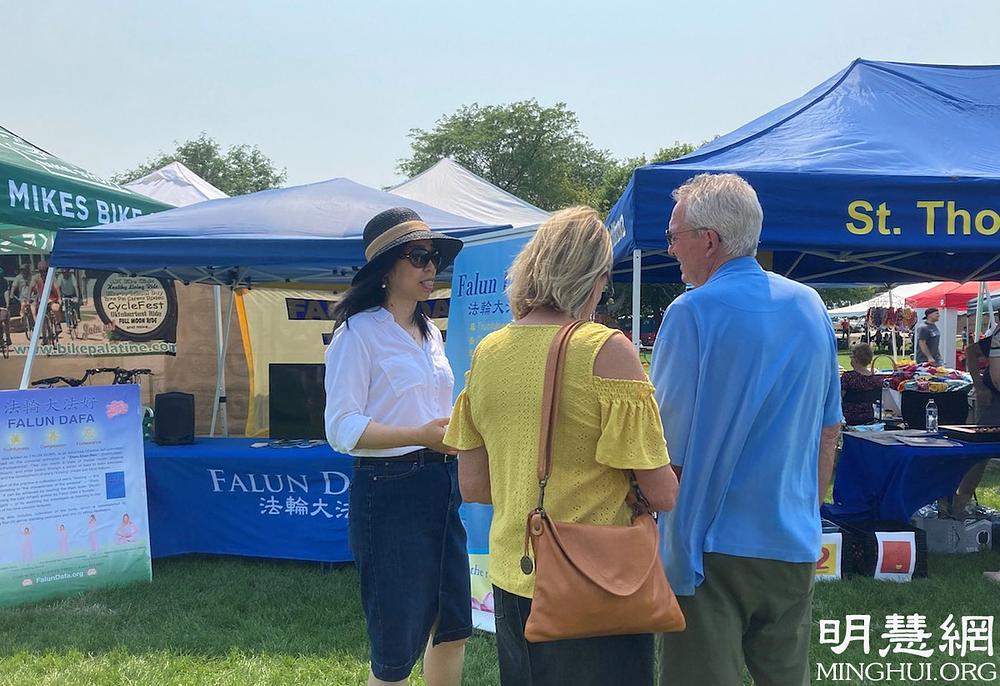 Proteklog vikenda, kad su SAD proslavljale Dan nezavisnosti, Falun Dafa praktikanti iz Chicaga su učestvovali na proslavi u Palatinu, gradu sjeverozapadno od Chicaga. Oni su lokalnom stanovništvu predstavili Falun Dafa i govorili im o aktuelnom progonu ove duhovne discipline u Kini.