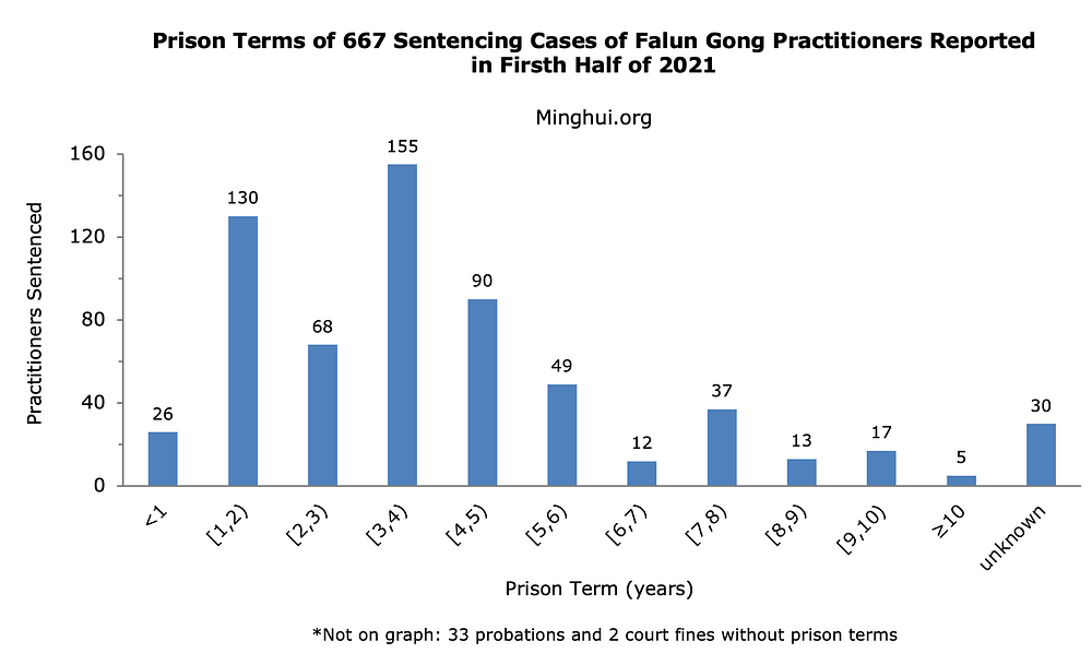 U prvoj polovini 2021. godine potvrđeno je da je 667 Falun Gong praktikanata osuđeno na zatvorske kazne zbog svoje vjere u duhovnu disciplinu koja je na meti progona kineskog komunističkog režima još od 1999. godine.