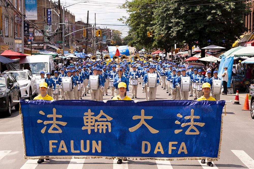 Parada koju je predvodio Tian Guo Marching Band i koja je imala sekciju sa temom "napustimo KPK", je bila dugačka kao čitava kineska zajednica na Osmoj aveniji. Veliki je broj ljudi zastajao da gleda i fotografiše ili snima ovaj događaj. Neki su ljudi pohvalili praktikante kazavši: "Parada je veoma grandiozna!"