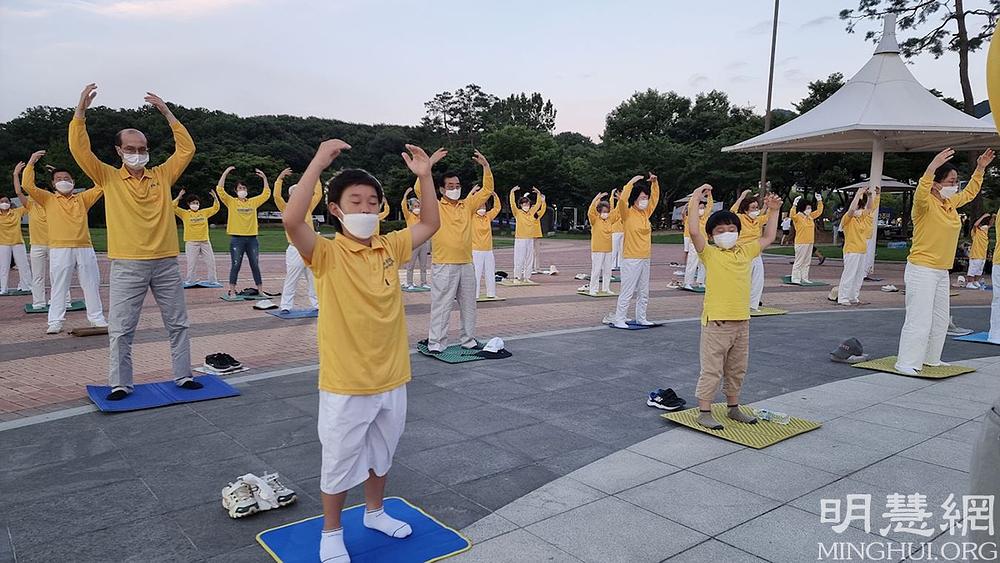 Kada su automobili prošli pored Parka APEC Naru, jednog od najpopularnijih mjesta u Busanu, tamo je bilo gotovo 50 praktikanata koji su zajednički radili vježbe. Praktikanti su ondje vozačima koji su čekali na semaforu dijelili brošure i privjeske u obliku lotosa. "Pandemija je zabrinula mnoge ljude", rekao je jedan praktikant. "Prakticiranje Falun Gonga će ljudima poboljšati um i tijelo i ojačati imunološki sistem, pa se nadamo da će više ljudi imati koristi od toga."