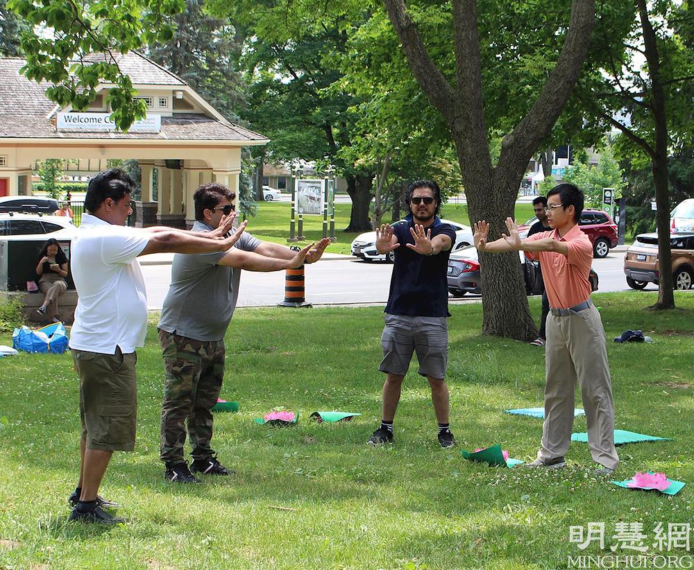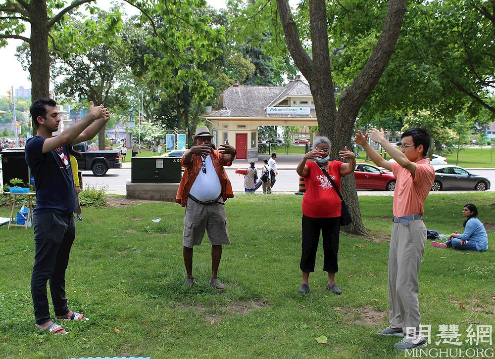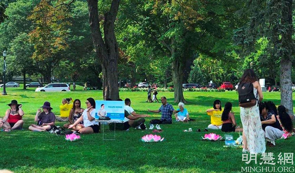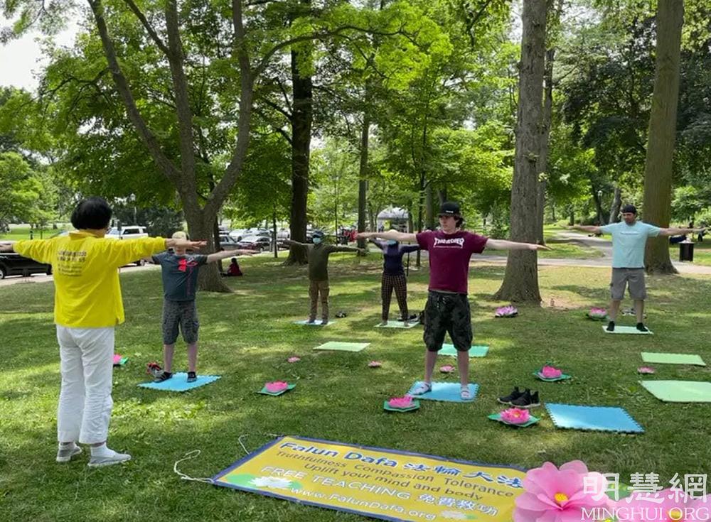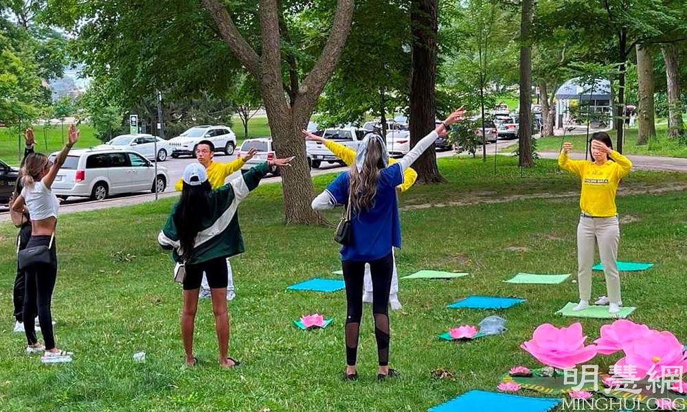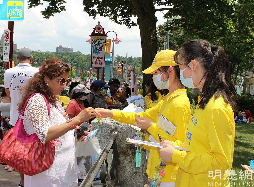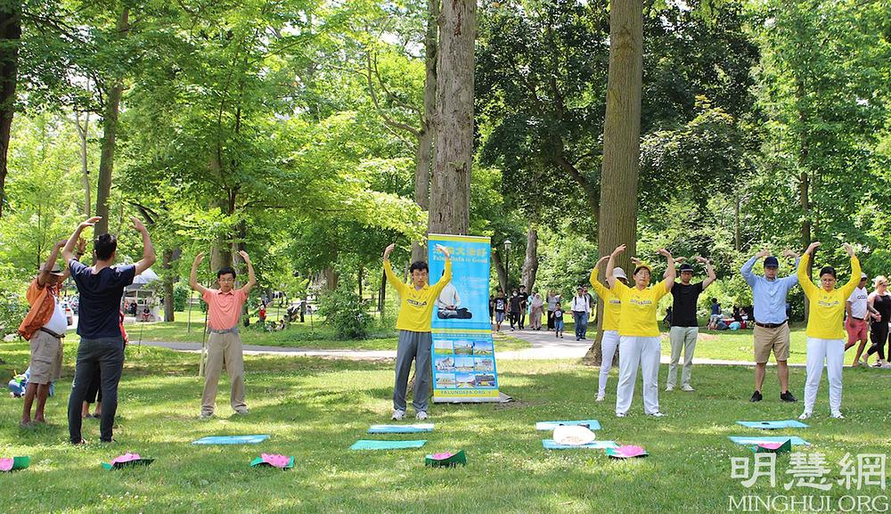Falun Dafa praktikanti iz Toronta u Kanadi već godinama održavaju mjesto za grupno prakticiranje na slikovitim slapovima Nijagare, koje posjećuju turisti iz cijelog svijeta. Vježbalište je otvoreno svaki dan i privlači mnoge posjetitelje.