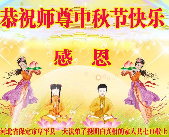 Porodica praktikantice iz grada Baodinga u provinciji Hebei je poželjela Učitelju Liju sretan Praznik sredine jeseni. U svojoj čestitci su napisali: „Moja majka ove godine puni 91 godinu. Otkako je prije dvije decenije počela prakticirati Falun Gong, ona se preobrazila iz osobe koja je od glave do pete patila od raznih bolesti, nesposobne da obavlja bilo koji posao u vrlo zdravu osobu bez ikakve bolesti. Pored toga, ona više nije nagluha, vid joj je dobar, nema sijedu kosu, zubi su joj zdravi a ona hitro obavlja kućanske poslove. Budući da ona prakticira Falun Gong, ja se kao njena kćerka nikada nisam morala brinuti o njenom zdravlju. Prema njenim riječima, o njoj se brine njen Učitelj. Hvala vam, Učitelju, što ste mojoj majci podarili zdravo tijelo. ”