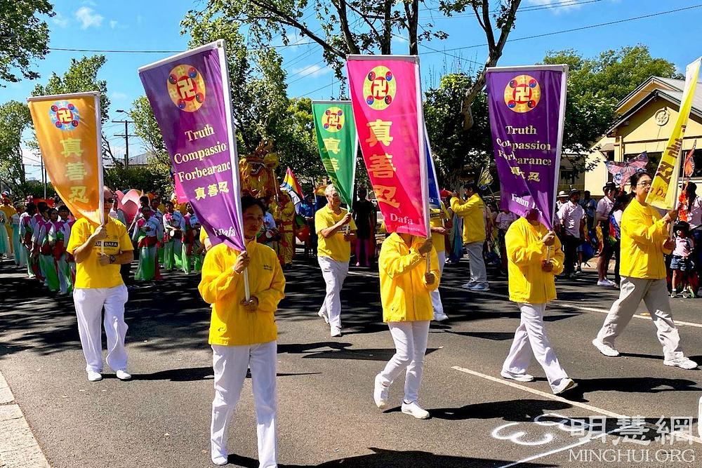 Jedan je najavljivač kazao: „Gledajte! Dolazi sjajna i šarena Falun Dafa povorka. Oni su dio karnevala cvijeća u Toowoombi već 22 godine, još od 1999. godine.”