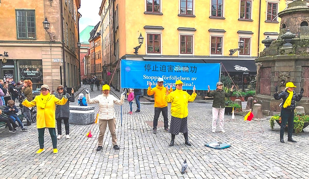 Na Stureplanu u blizini centra Stockholma i Muzeja Nobelove nagrade, Falun Dafa praktikanti su, 1. i 2. oktobra 2021. godine, demonstrirali izvođenje vježbi i prisutnima govorili o zločinima prisilnog odstranjivanja organa koje vrši Komunističke partije Kine (KPK), a čija su meta praktikanti.