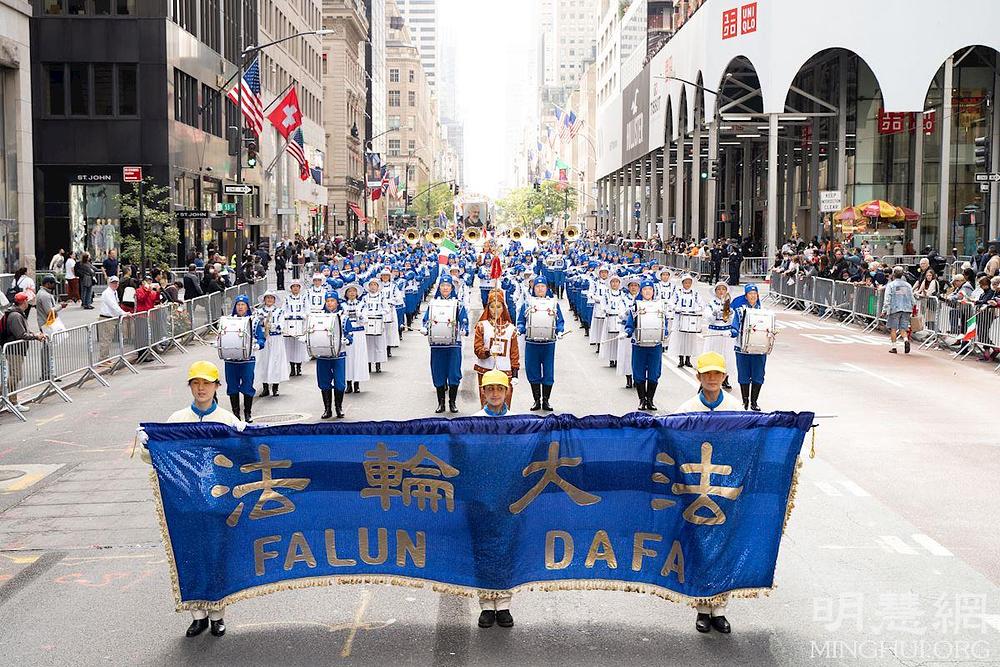 U sklopu parade nastupali su orkestri, izvođači na pokretnim binama i stotinu grupa koja su marširale od 44. ulice do 72. ulice. Falun Dafa praktikanti su sudjelovali s nekoliko grupa, naime s orkestrom Tian Guo, s grupom barjaktara, s grupom koja je demonstrirala vježbe i s grupom dobošara. Gledatelji su bili duboko impresionirani šarenim bojama i lijepom glazbom koji su pratili praktikante i pljeskom su im pokazivali podršku.