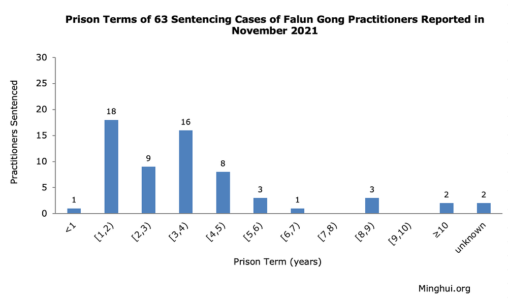 Ova 63 novopotvrđena slučaja uključuju jedan koji se dogodio 2020. godine, tri u februaru 2021, dva u julu 2021, četiri u septembru 2021, 23 u oktobru 2021 i 30 u novembru mjesecu 2021. godine. Zbog stroge cenzure koja vlada u Kini, progon ne može uvijek blagovremeno prijavljen, niti su sve informacije lako dostupne.