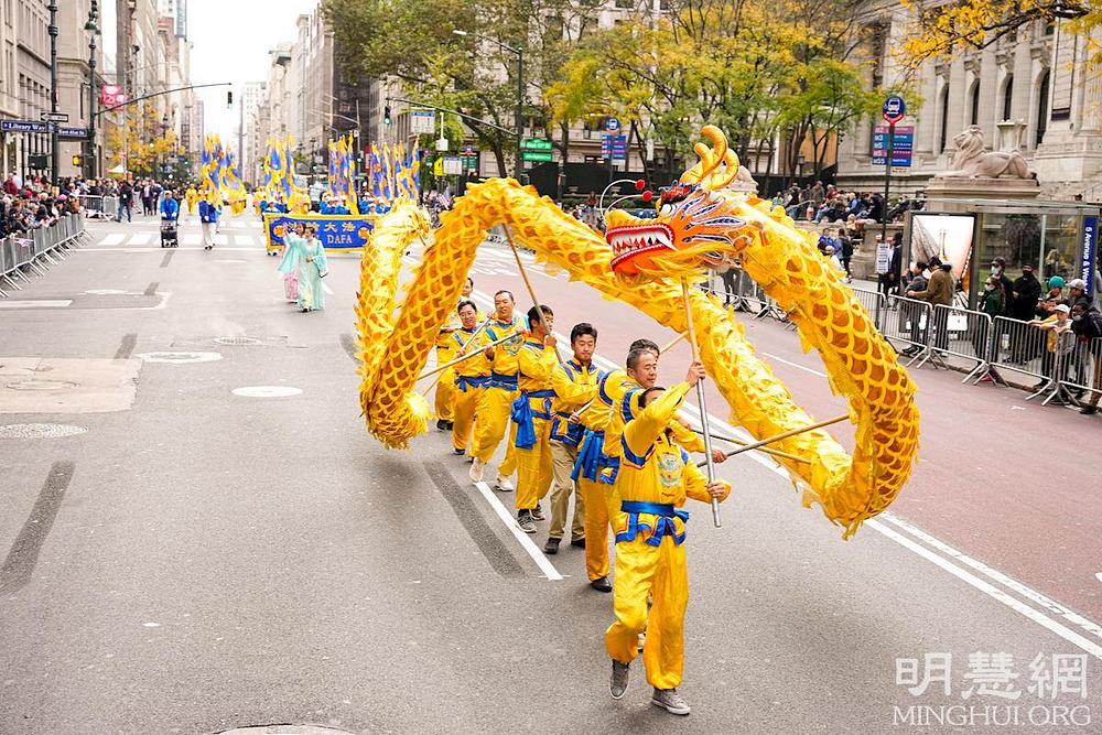Parada za Dan veterana u New Yorku najveća je povorka za Dan veterana u SAD. Ove godine u manifestaciji je sudjelovalo gotovo 200 grupa. Također je prisustvovao i Falun Dafa kontingent po 17. put na paradi. Kad je Tian Guo Marching Band umarširao na crveni tepih ispred glavne pozornice, organizatori, članovi Ujedinjenog vijeća veterana rata, zamolili su orkestar da stane i završi paradu s izvođenjem „The Stars and Stripes Forever“.