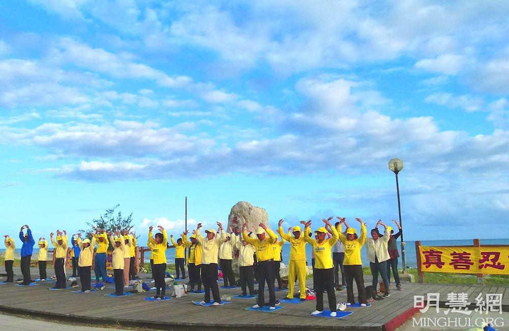 Budući se približava Nova godina, Falun Dafa praktikanti iz Taitungu su se 21. decembra okupili u Seaside Parku. Zajedno su radili vježbe i uputili pozdrave gospodinu Li Hongzhiju, osnivaču Falun Dafa. Iskoristili su ovu priliku da razmisle o svojim putevima kultivacije i kazali kako se nadaju da će se u narednoj godini bolje uskladiti s principima Istinitosti-Dobrodušnosti-Tolerancije. Svi su rekli da su zahvalni što su dobili priliku da prakticiraju Falun Dafa.