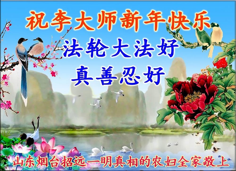 Jedna starija žena u ruralnom području grada Džaojuan, provincija Šandong, napisala je da je cela njena porodica blagoslovena zbog podrške Dafi i njenim praktikantima. I ona i njen muž su zdravi, sin i snaha imaju dobar posao, a unuk je ljupko i bistro dete. Rekla je da će cela njena porodica uvek pamtiti da je „Falun Dafa dobra, i da suIstinitost-Blagost-Trpeljivost dobri“. Njihova porodica čezne za danom kada će se Učitelj vratiti u Kinu i kada će moći lično da sretnu Učitelja.