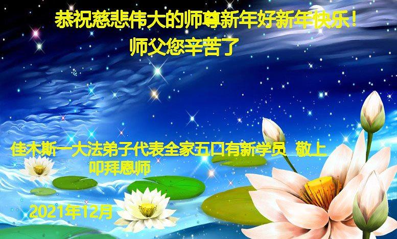 Falun Dafa se širi nadaleko već 29 godina. Široki um majstora Lija (osnivača Falun Dafe) i saosećajna budinska svetlost obasjali su ceo svet. Kako se Fa sprema da ispravi ljudski svet, kultivacija u Dafi privlači sve više pridošlica. Mnogi od njih su doživeli brzo poboljšanje zdravlja i podizanje karaktera. Oni su neizmerno zahvalni Učitelju. Kako je nova 2022. godina odmah iza ugla, novi Dafa praktikanti su poslali svoje čestitke za Novu godinu Učitelju.
