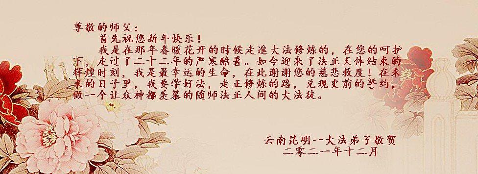 Sa svitanjem Nove 2022. godine, praktikanti iz 30 provincija i gradova na nivou provincija širom Kine poslali su svoje iskrene pozdrave gospodinu Li Hongzhiju, osnivaču Falun Dafa. Oni zahvaljuju Učitelju Liju što je svijetu predstavio ovu praksu, što ih je vodio tokom godina, dobrodušno se brinuo za njih sve vreme i pružio im još mnogo toga.